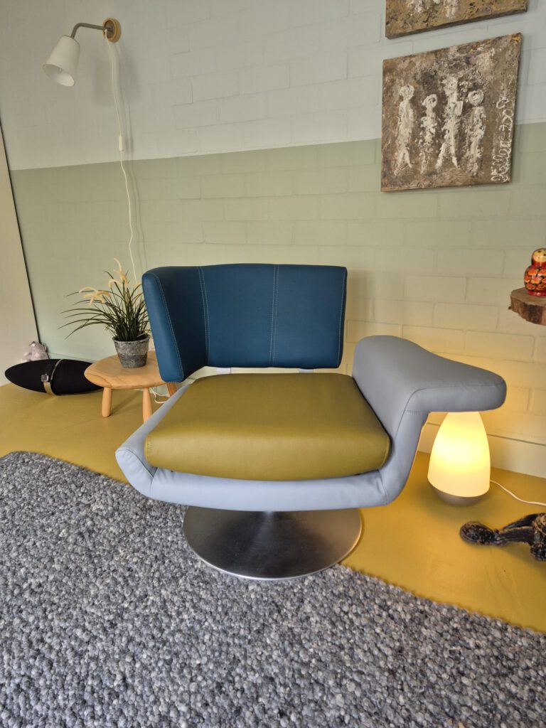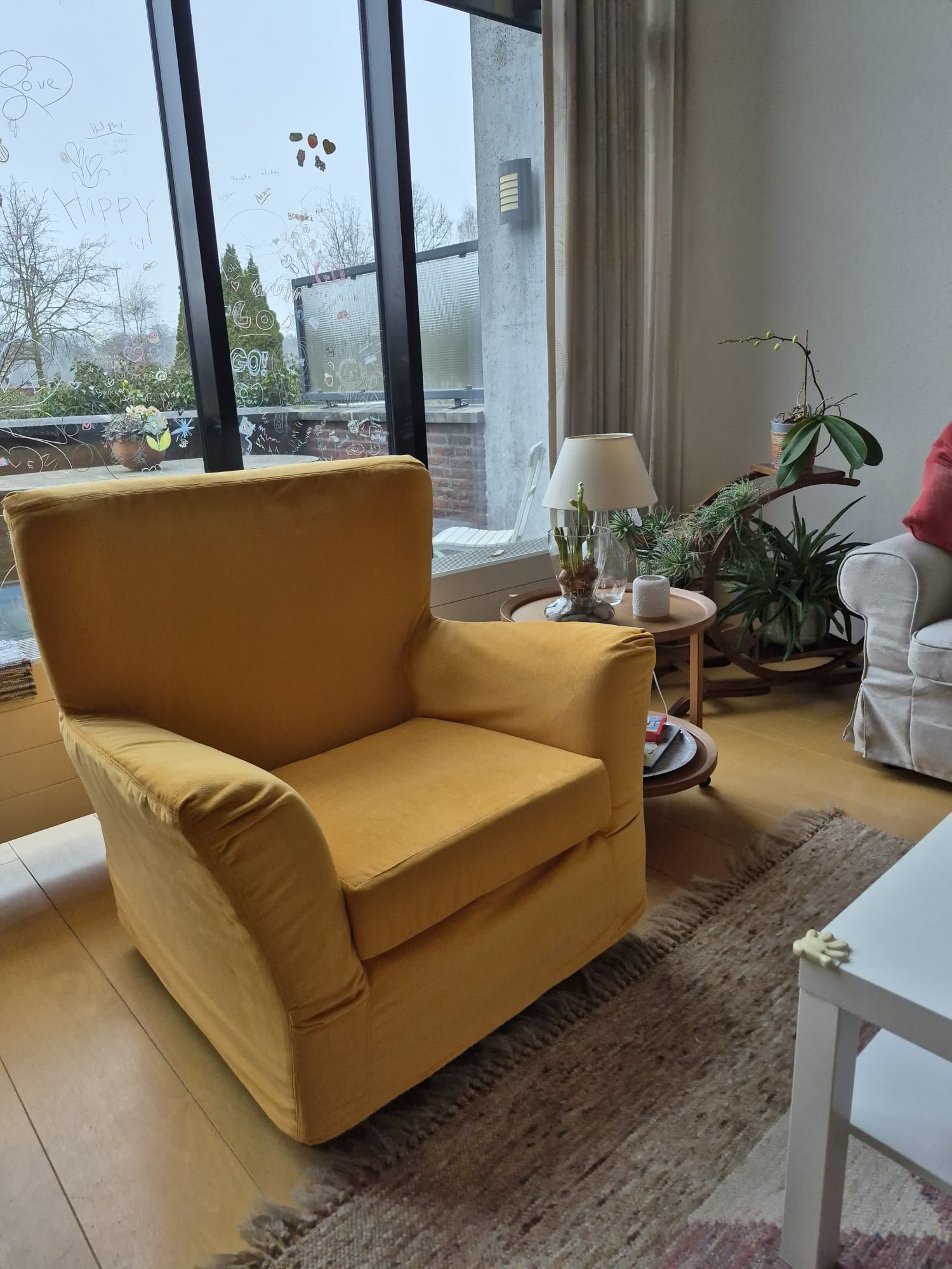 Een gele fauteuil. Stof Amara van de firma Casal.
